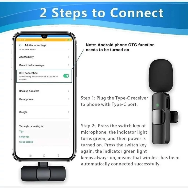 این میکروفون گیرهای بیسیم با طراحی هوشمند و قابلیتهای پیشرفته، تجربهای حرفهای از ضبط صدا و پخش زنده را برای شما فراهم میکند. استفاده از آن ساده و بدون نیاز به آداپتور یا برنامه اضافی است.