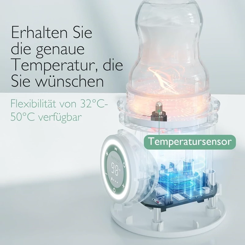 دارای ۶ سطح تنظیم دما (32–50°C) و سنسور هوشمند برای جلوگیری از داغ شدن بیش از حد و حفظ مواد مغذی شیر مادر.