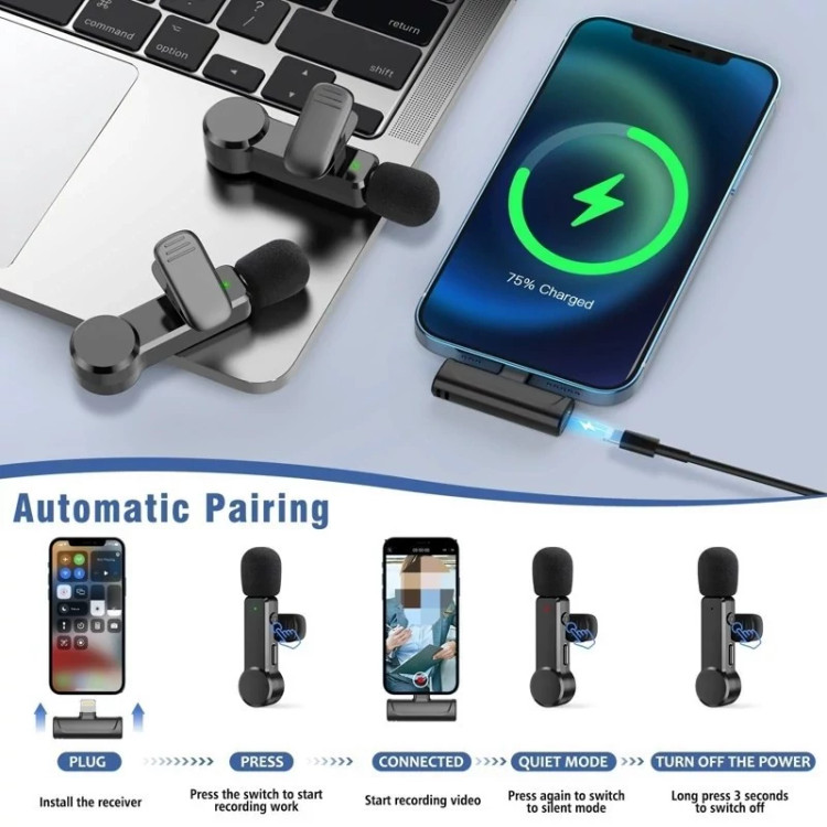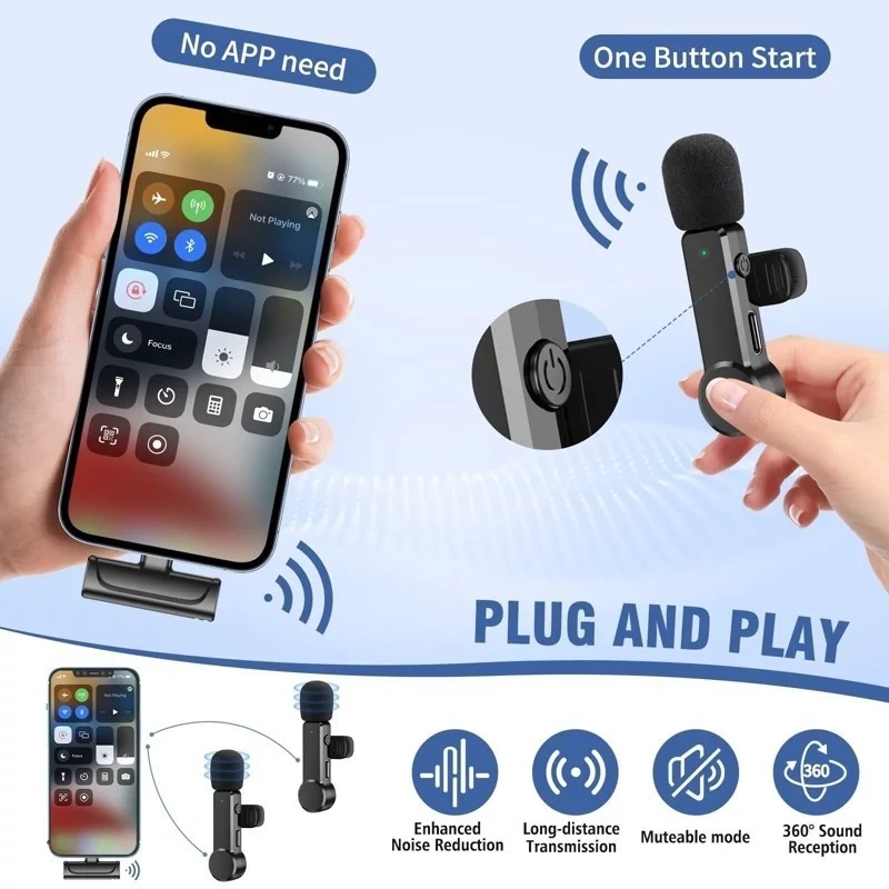 میکروفون بیسیم Newmine بدون نیاز به نصب برنامه اضافی، تنها با اتصال گیرنده به آیفون فعال میشود. کافی است فرستنده را روشن کنید تا دستگاه بهطور خودکار جفت شود. وجود اسفنج ضدباد با چگالی بالا و تراشه هوشمند کاهش نویز باعث میشود حتی در محیطهای شلوغ، صدایی شفاف و باکیفیت ضبط کنید.
