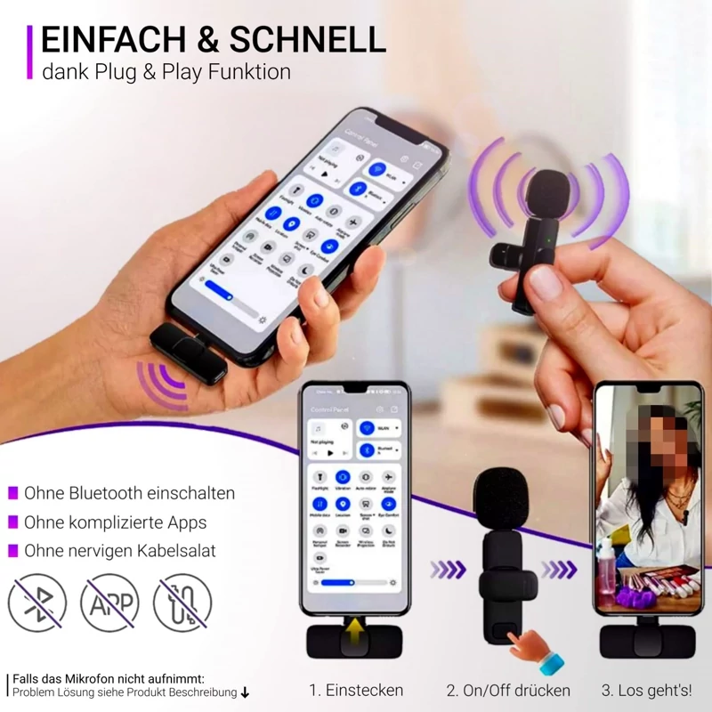 تنها کافیست گیرنده را به موبایل خود متصل کنید، میکروفون را روشن کنید و فوراً شروع به ضبط کنید!