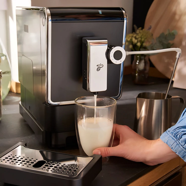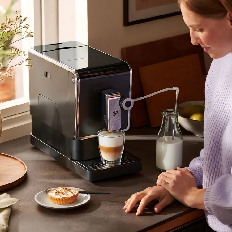 سیستم «شیر یکلمسی» که با نازل استیل ضدزنگ یکپارچه شده، امکان تهیهی کاپوچینو و کف شیر را تنها با فشردن یک دکمه فراهم میکند. غلظت کف شیر نیز به کمک یک ولوم چرخشی قابل تنظیم است، بنابراین میتوانید نوشیدنیهای متنوع را مطابق سلیقهی خود آماده کنید.
