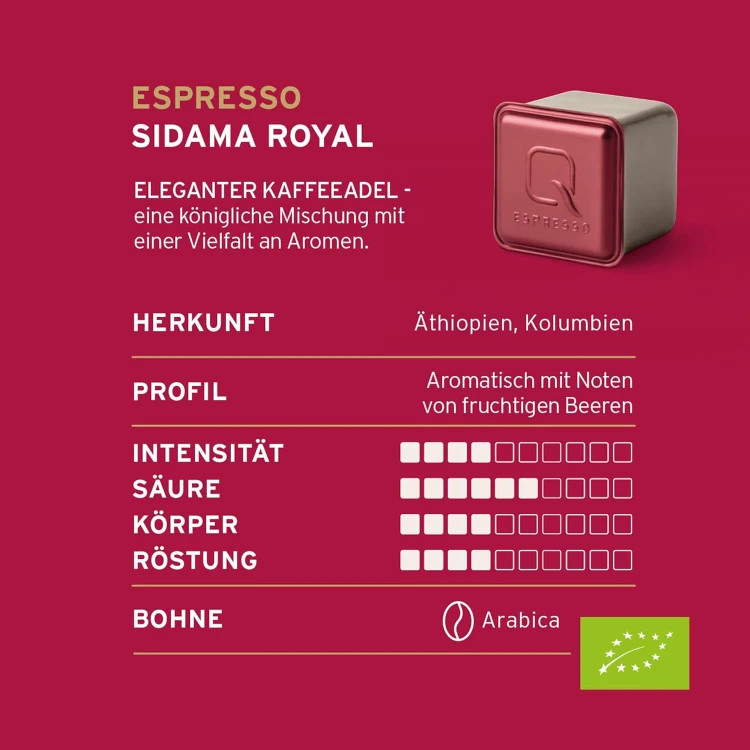 ترکیب سلطنتی سیداما رویال با دانههای ۱۰۰٪ عربیکای برشتهشده ملایم، عطری دلنشین از توتهای شیرین، گلهای لطیف و مرکبات تازه را در هر جرعه به شما هدیه میدهد. شدت ملایم ۴ از ۱۰ آن برای لحظههایی آرام، لطیف و خوشطعم کاملاً ایدهآل است.