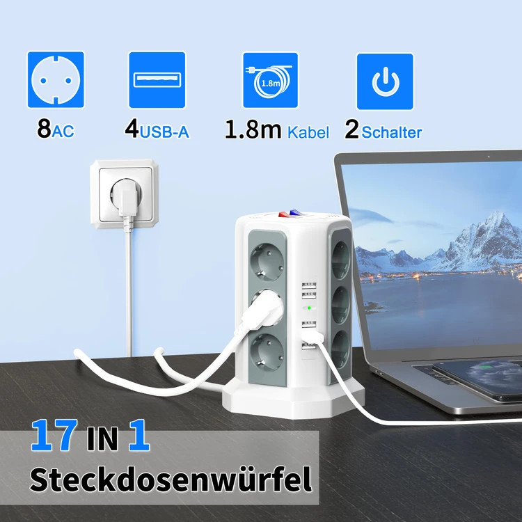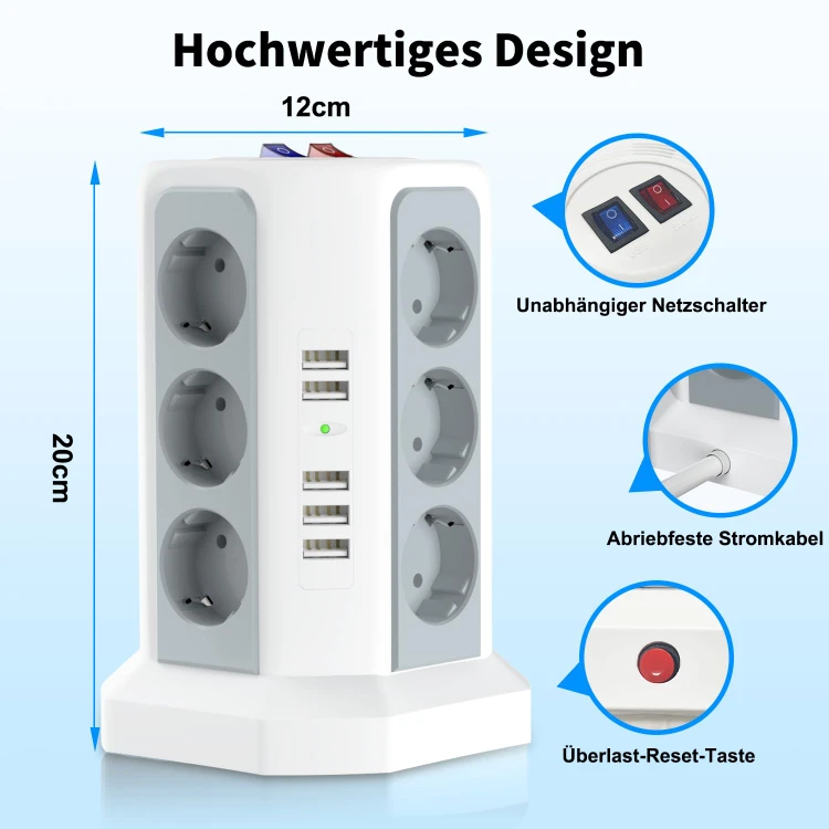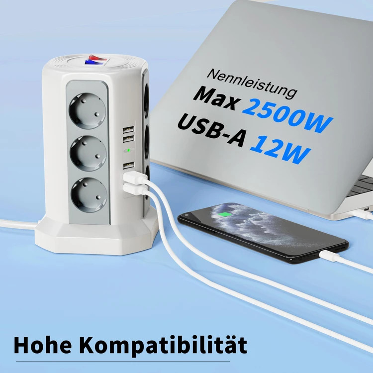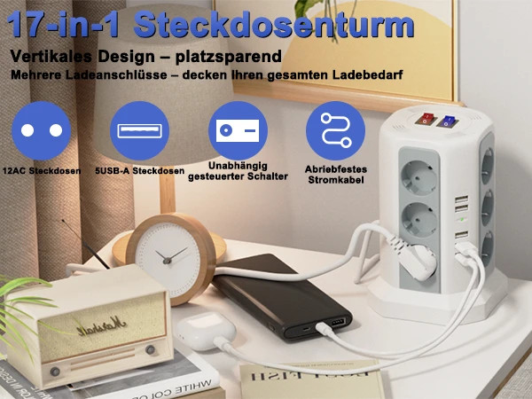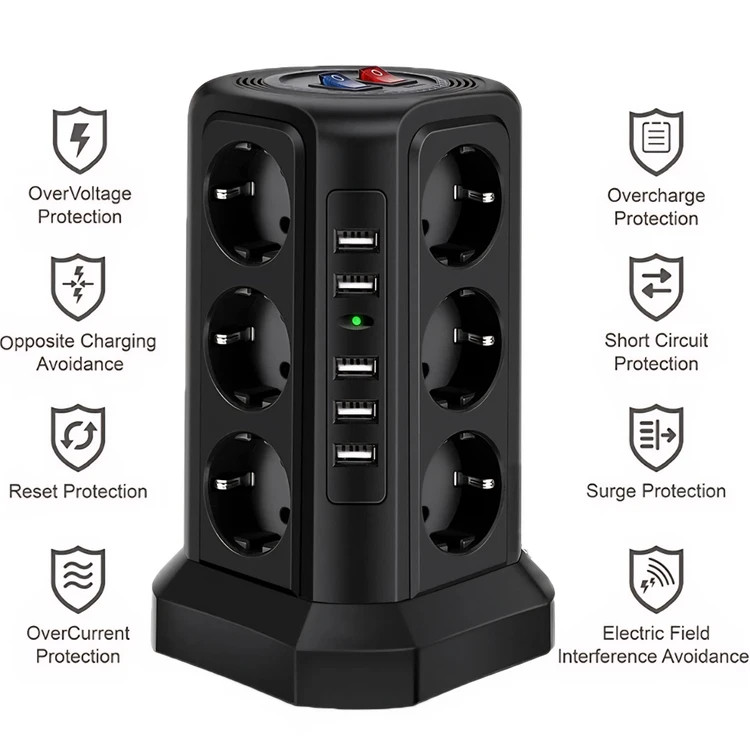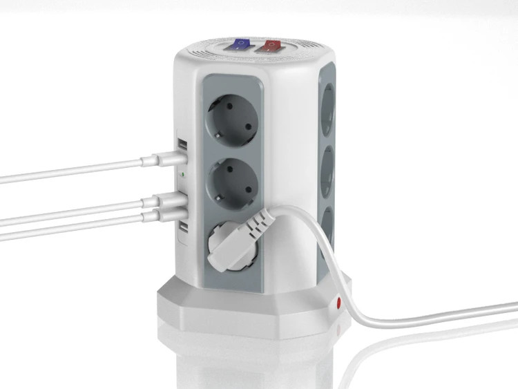 این چندراهی هوشمند با ۱۲ پریز برق + ۵ پورت USB (با مجموع جریان ۲.۴ آمپر)، انتخابی عالی برای شارژ همزمان موبایل، تبلت و روشنکردن لوازم خانگی بدون شلوغی و ازدحام آداپتورهاست.