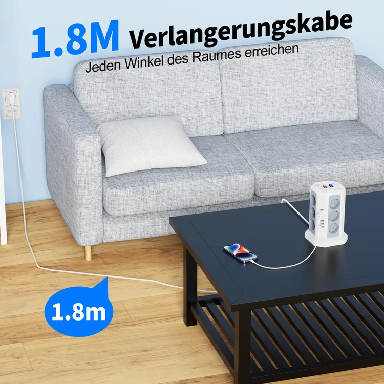 کابل ۱.۸ متری این چندراهی باعث میشود بدون دردسر به پریزهایی که پشت مبل، میز یا گوشههای سخت هستند دسترسی داشته باشید. مناسب برای تلویزیون، لامپ، مودم یا حتی لوازم پرمصرف مثل مایکروویو.