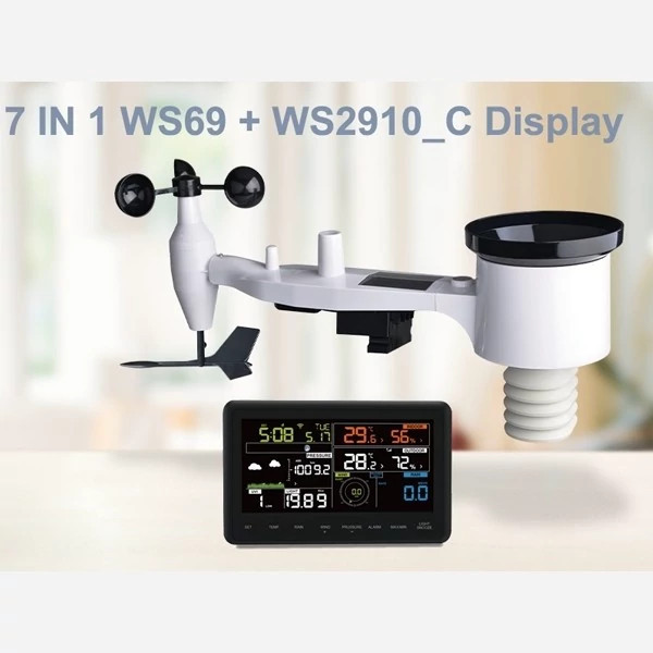 ایستگاه هواشناسی WS2910 شامل حسگر بیسیم ۷ در ۱ خورشیدی و کنسول نمایشگر رنگی LCD است. حسگر هوشمند فضای باز، دادههای دقیق آب و هوا را جمعآوری کرده و به صورت زنده به کنسول منتقل میکند. میتوانید اطلاعات را مستقیماً روی نمایشگر مشاهده کنید یا با اتصال Wi‑Fi، از طریق برنامه Ecowitt / WS View Plus به دادههای زنده دسترسی داشته باشید. 🌤️📲