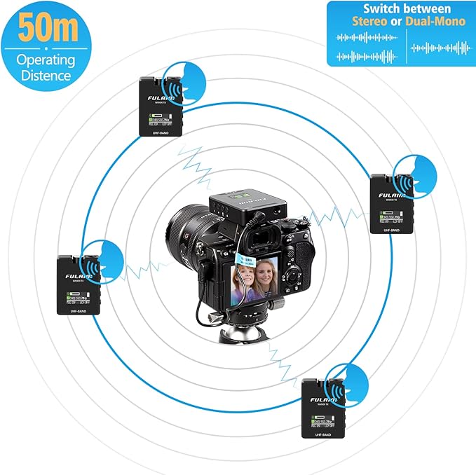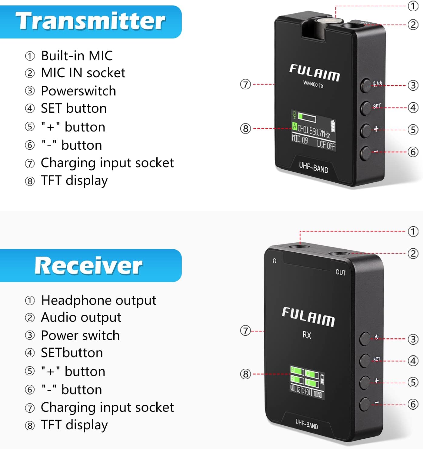 میکروفون یقهای بیسیم FULAIM WM400 با بهرهگیری از فناوری UHF با فرکانس بالا، انتقال صدایی پایدار و بدون نویز را تضمین میکند. سیستم ضد تداخل پیشرفته باعث میشود حتی در محیطهای شلوغ نیز کیفیت صدا حفظ شود.