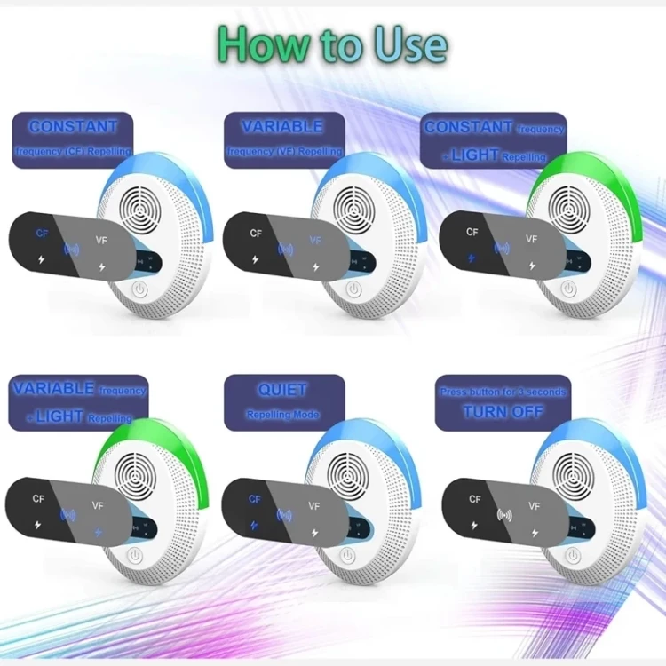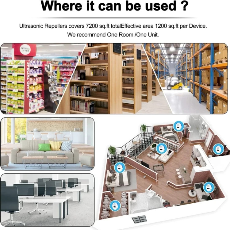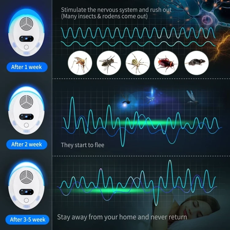 دافع اولتراسونیک حشرات، راهکاری مؤثر برای دفع سریع و مداوم انواع آفات از جمله پشه، سوسک، ساس، مورچه، کک، موش، عنکبوت و سایر جوندگان است و انتخابی ایدهآل برای استفاده در منازل و محیطهای کاری محسوب میشود.