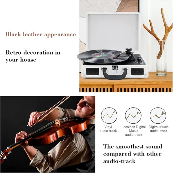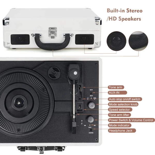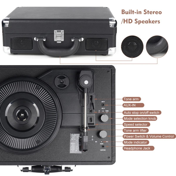 مدل M417 ترکیبی از زیبایی کلاسیک و امکانات مدرن است. این گرامافون با طراحی چمدانی، به راحتی قابل حمل بوده و در هر مکانی همراه شماست.