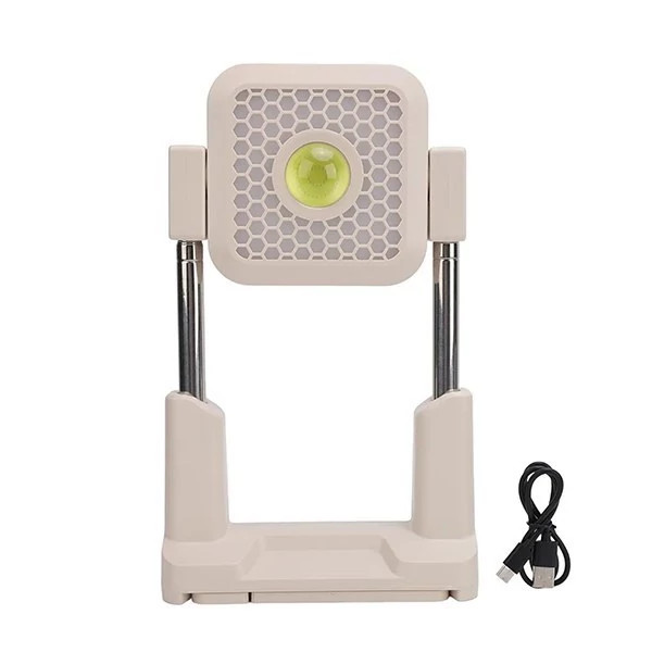 🏕 پایه قابل تنظیم و قلاب حمل: چرخش 360 درجه، قابل استفاده روی زمین، میز یا آویزان
