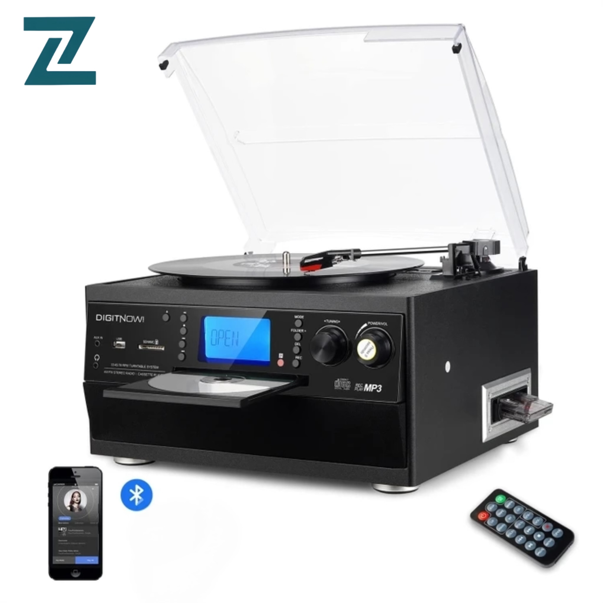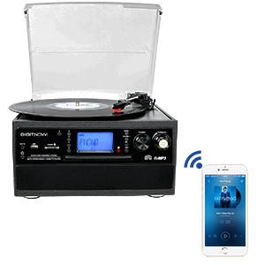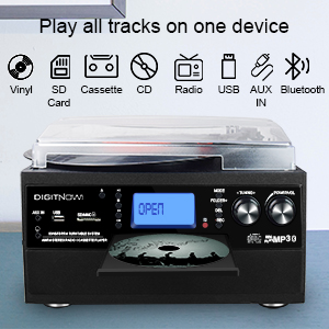گرامافون بلوتوثی DIGITNOW! با اسپیکر استریو | تبدیل وینیل LP به MP3، پخش CD و کاست، رادیو، AUX، USB و SD با کنترل از راه دور