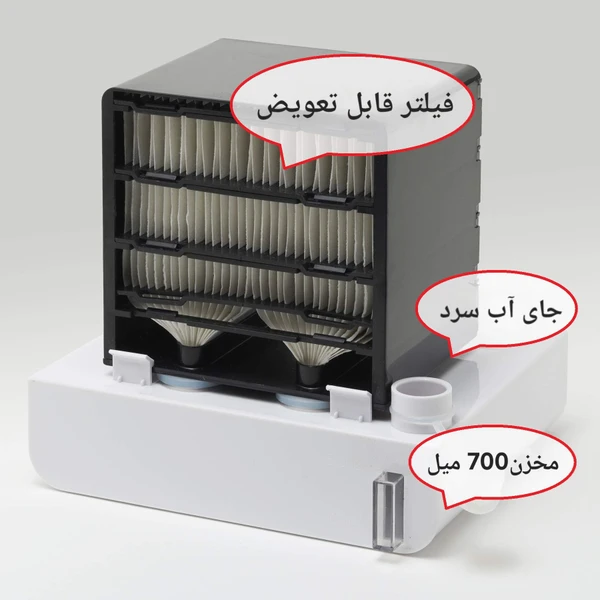 این کولر کوچک و هوشمند، با استفاده از تبخیر آب، هوای اطراف شما را خنک و مرطوب میکند. ایدهآل برای کسانی که به دنبال یک خنککننده شخصی و بیصدا هستند.
