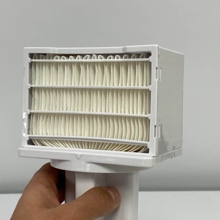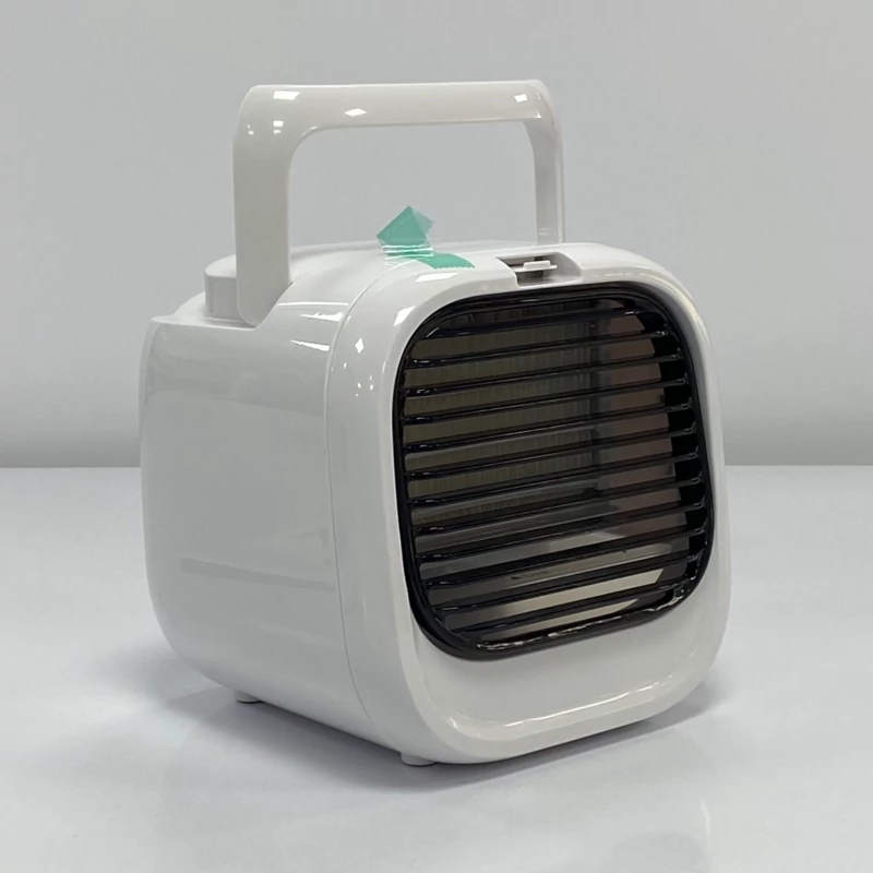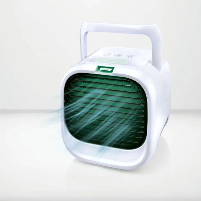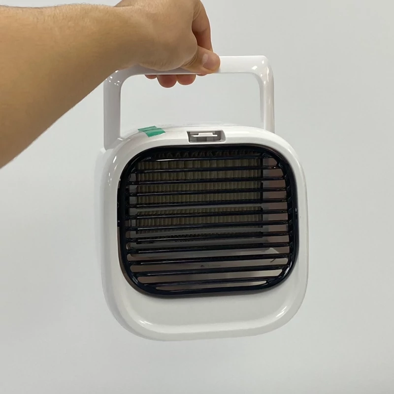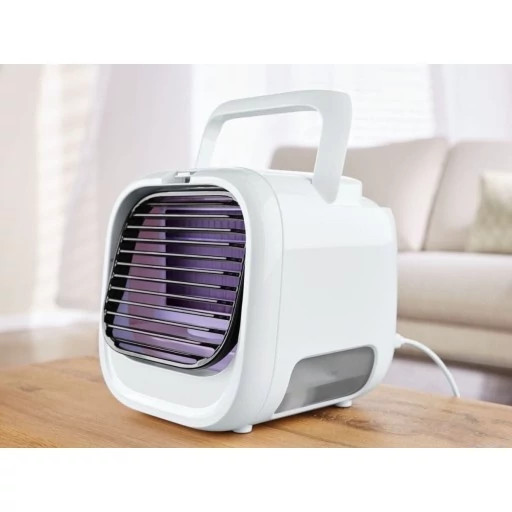 این کولر رومیزی با استفاده از آب خنک، هوای اطراف را تازه و مرطوب میکند. برای خنک شدن بیشتر، کافیست مخزن را با تکههای یخ پر کنید.