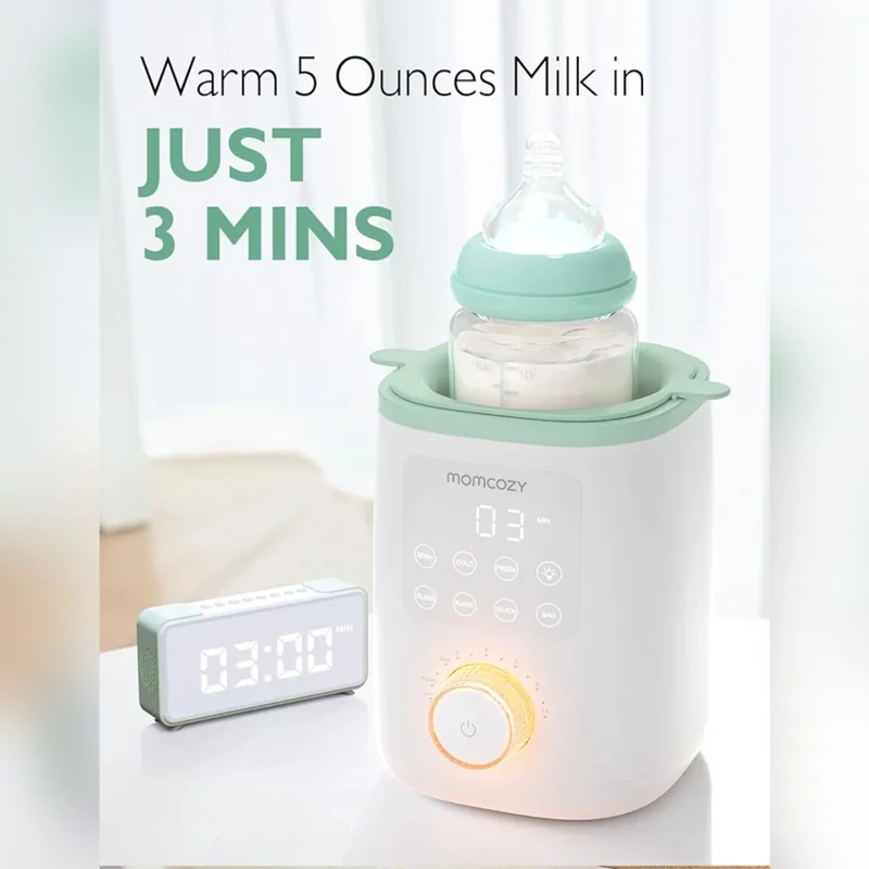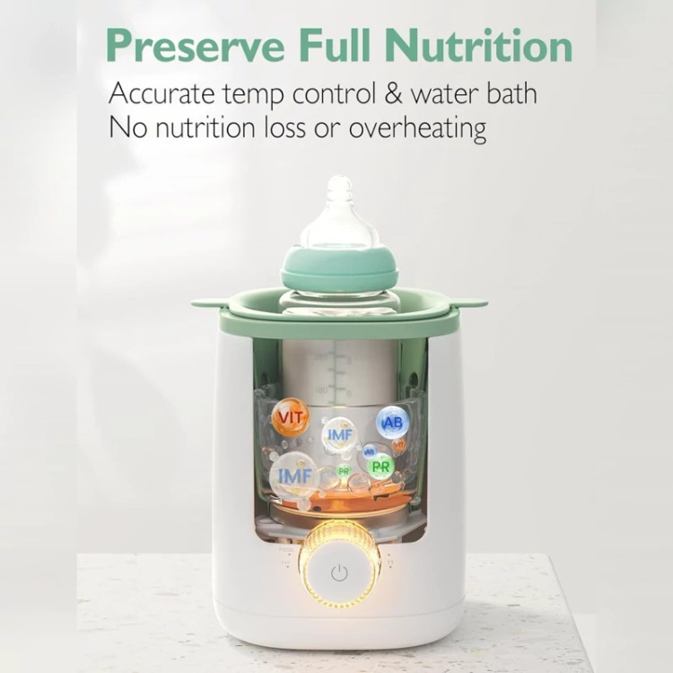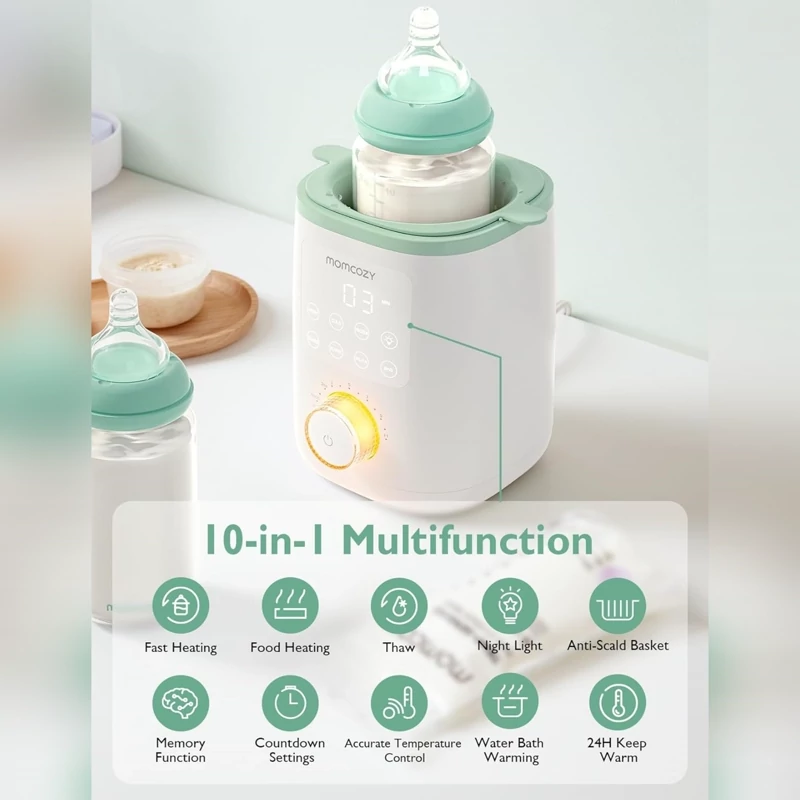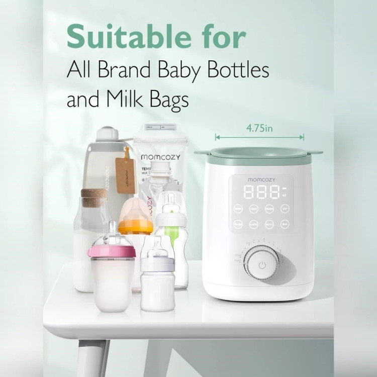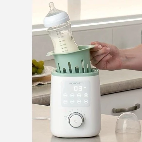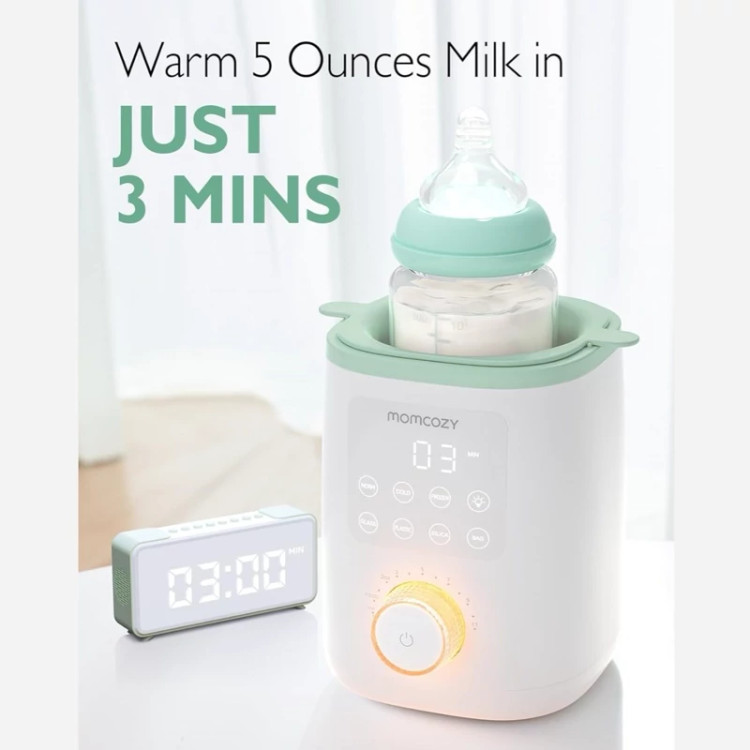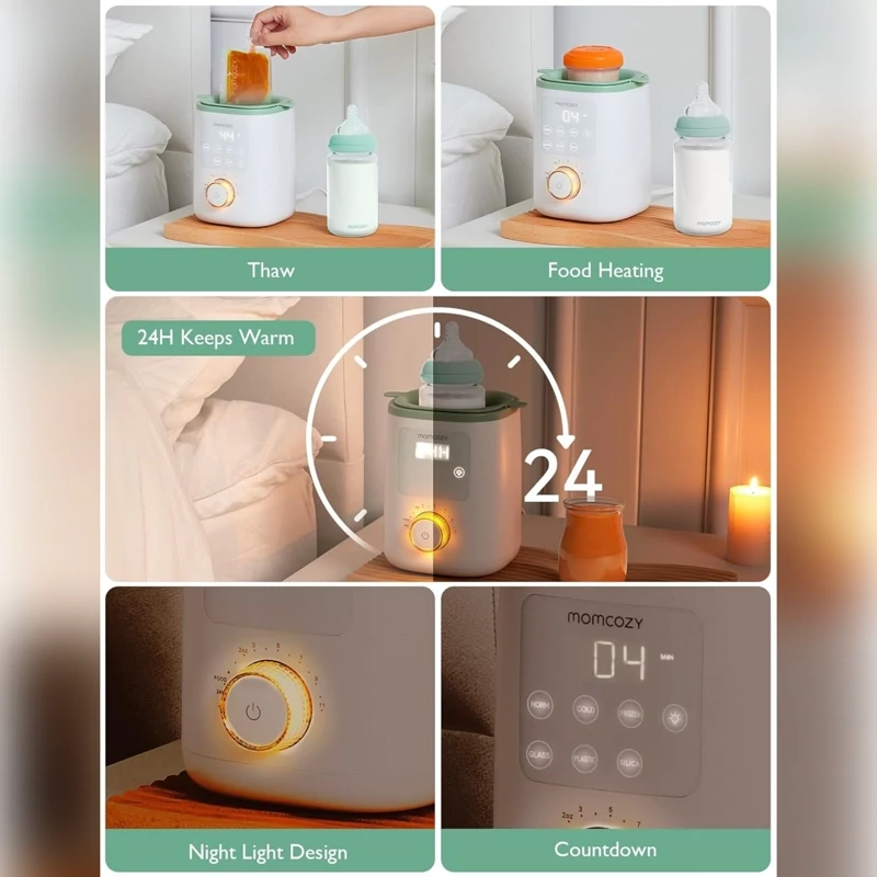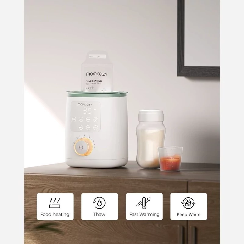 وارمر شیشه شیر Momcozy Nutri با فناوری گرمکردن ملایم در حمام آب، از داغ شدن بیشازحد جلوگیری کرده و تمام ارزش غذایی شیر مادر را حفظ میکند.