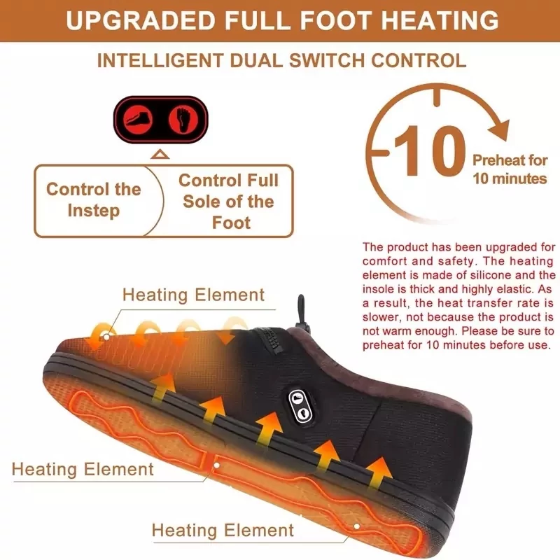 این گرمکن پا با فناوری جدید تحقیقوتوسعه، گرمایش کامل کف و زیره را ارائه میدهد. سیستم گرمایش بالا و پایین باعث میشود دما بهسرعت افزایش یابد و انگشتان، کف پا و پاشنه گرمایی یکدست و دلنشین را احساس کنند.