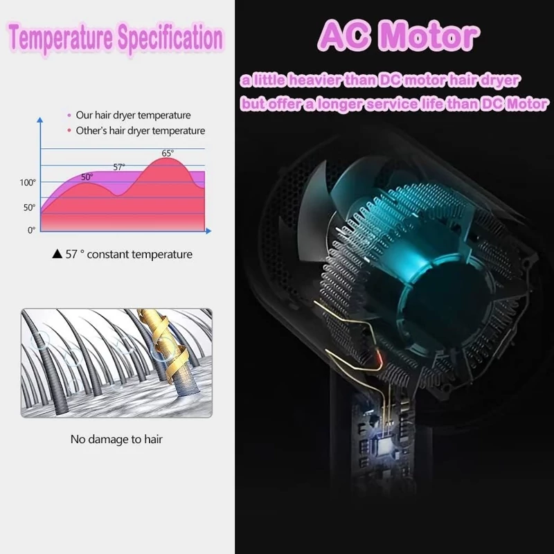 فناوری یونساز این سشوار با کاهش وز و ترمیم کوتیکول مو، درخشندگی طبیعی ایجاد کرده و از خشکی و آسیب جلوگیری میکند. دمای ثابت نیز باعث میشود موها بهطور یکنواخت و بدون آسیب خشک شوند.