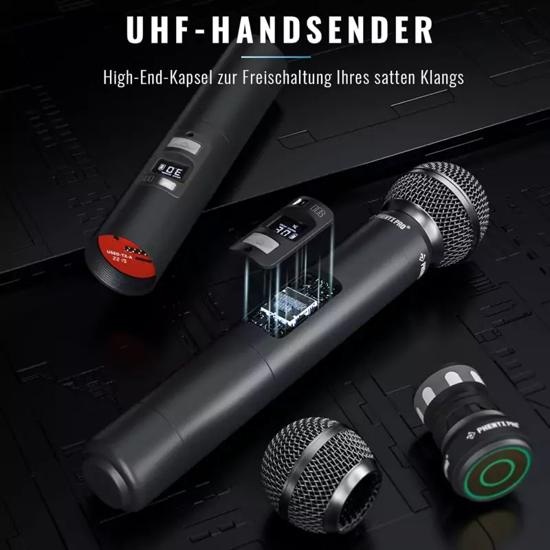 سیستم میکروفون بیسیم دوگانه UHF با امکان انتخاب فرکانس، کیفیت صوتی حرفهای و اتصال پایدار را ارائه میدهد.