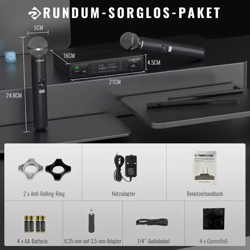 بدنه هر دو میکروفون و گیرنده کاملاً فلزی و بسیار مستحکم است. میکروفونهای دستی مجهز به کپسول کاردیویید داینامیک هستند که صدایی شفاف، پرقدرت و دقیق ارائه میدهند و نویز محیط را به حداقل میرسانند.