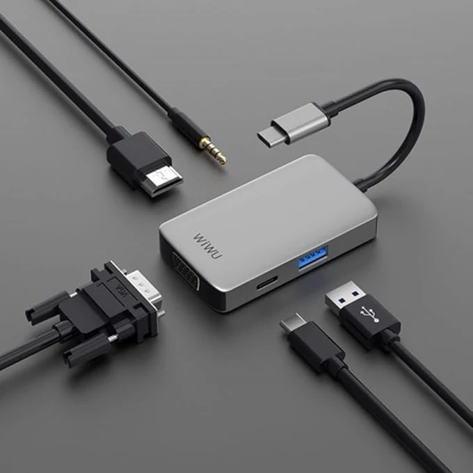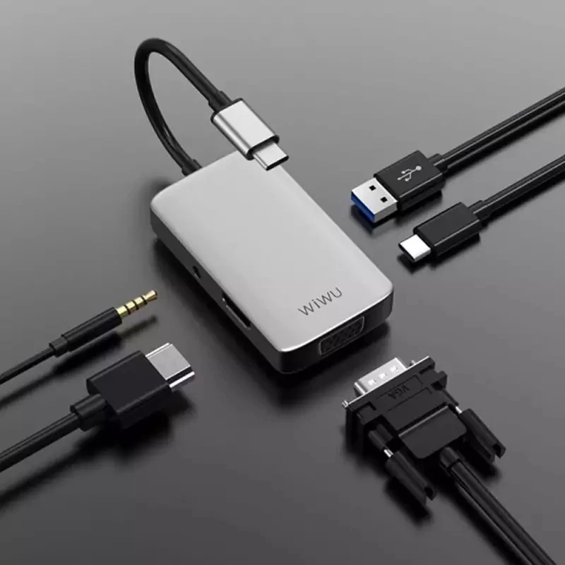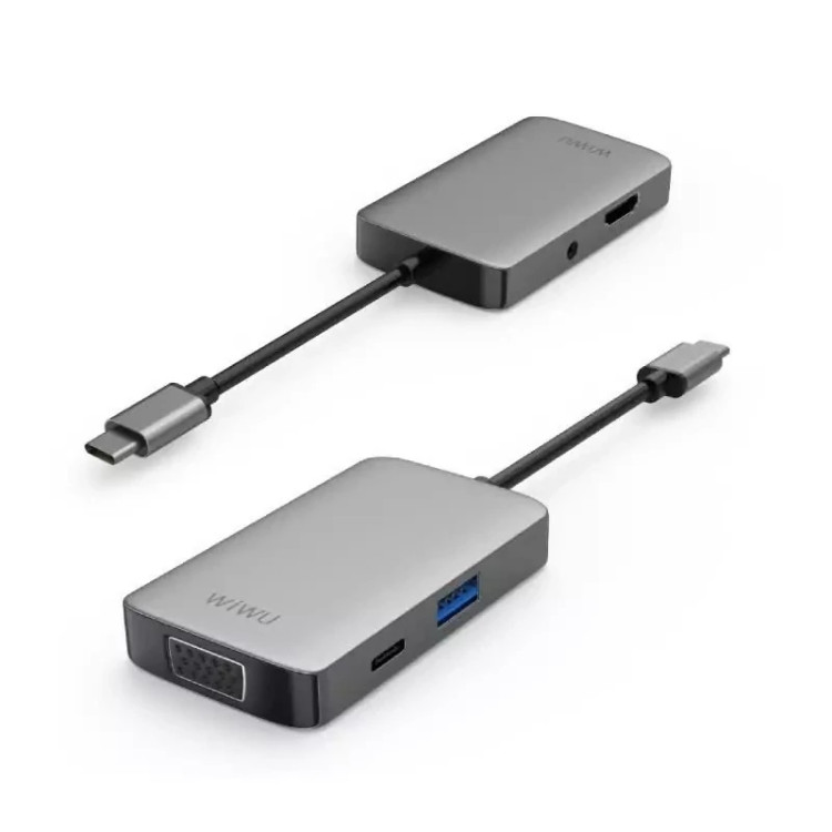 نام تجاری WiWU رنگ خاکستری رابط سخت افزاری USB، USB نوع C، USB 3.0 ویژگی های خاص پخش کنید، وصل کنید دستگاه های سازگار پروژکتورها، مانیتورها مجموع پورت های USB 2 سرعت انتقال داده 5 گیگابیت در ثانیه مواد آلومینیوم تعداد پورت ها 5 وزن مورد 126 گرم 1*HDMI با 4K*2K@30Hz پشتیبانی از دستگاه های USB3.0 USB-C پشتیبانی از هاب 1*USB3.0 پشتیبانی از شارژ 1*PD از طریق USB-C، صدای 1*3.5 میلی متر، LED 1*VGA1920*1200@60 هرتز نشان دهنده وضعیت کارکردن و پخش بدون درایور USB Hub DockingStation | USB Type-C | USB3.0 | HDMI | استریو | سرعت بالا | اندازه فشرده | حمل آسان | برای مک بوک و گوشی های هوشمند آلیاژ آلومینیوم + شیشه سکوریت | - خاکستری Wiwu Alpha T5 Pro یک هاب USB 4 در 1 است که یک راه آسان و راحت برای اتصال دستگاه های دارای USB Type-C به انواع دستگاه های خارجی و لوازم جانبی ارائه می دهد.
